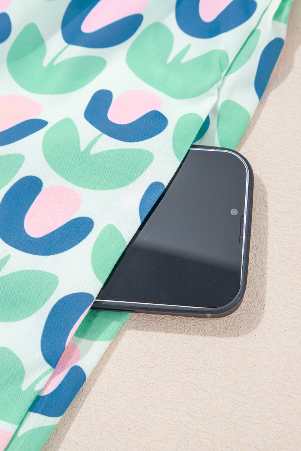 Green Floral Print Scallop Trim Pocket Mini Dress